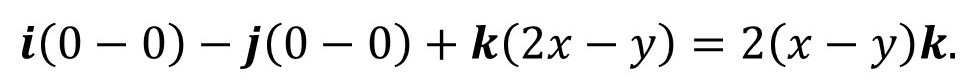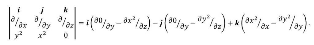Finally, let’s think about the cross product of ∇ and a vector. This time we’ll consider the vector r = y2i +x2j, as an example. Then