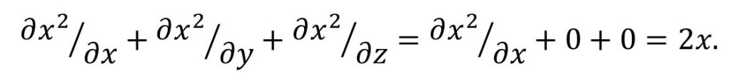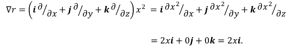 Now let’s look at the operation of ∇ on r = x2. Note that x2 is not a vector (it is a scalar) but we can still apply a vector operator to it. Then
