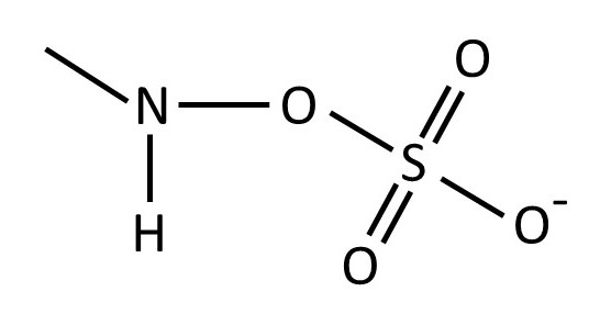 The picture above shows the structure of heparin – a polysaccharide secreted by specialist cells (post 16.18) in our bodies called mast cells. It is a repeating disaccharide consisting of 2-O-sulfated iduronic acid residues (left-hand side) joined by α(1 → 4) linkages (post 20.38) to 6-O-sulfated, N-sulfated glucosamine residues; the disaccharide residues are joined by β(1 → 4) linkages. The structure of the -NH.SO3– group is shown below.
