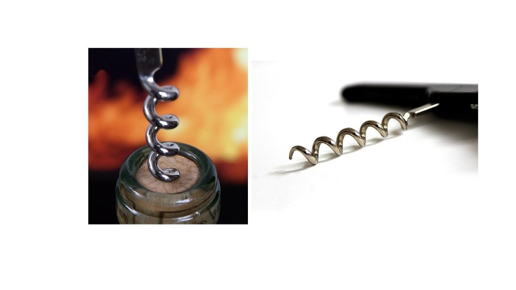 A corkscrew is used to remove corks from a bottle – see the picture above. It is made by bending a metal rod, with a circular cross-section into a shape called a helix. The centroids of all the circular cross-sections lie on a helical line that has a constant radius. The helix differs from a three-dimensional spiral because its radius is constant.