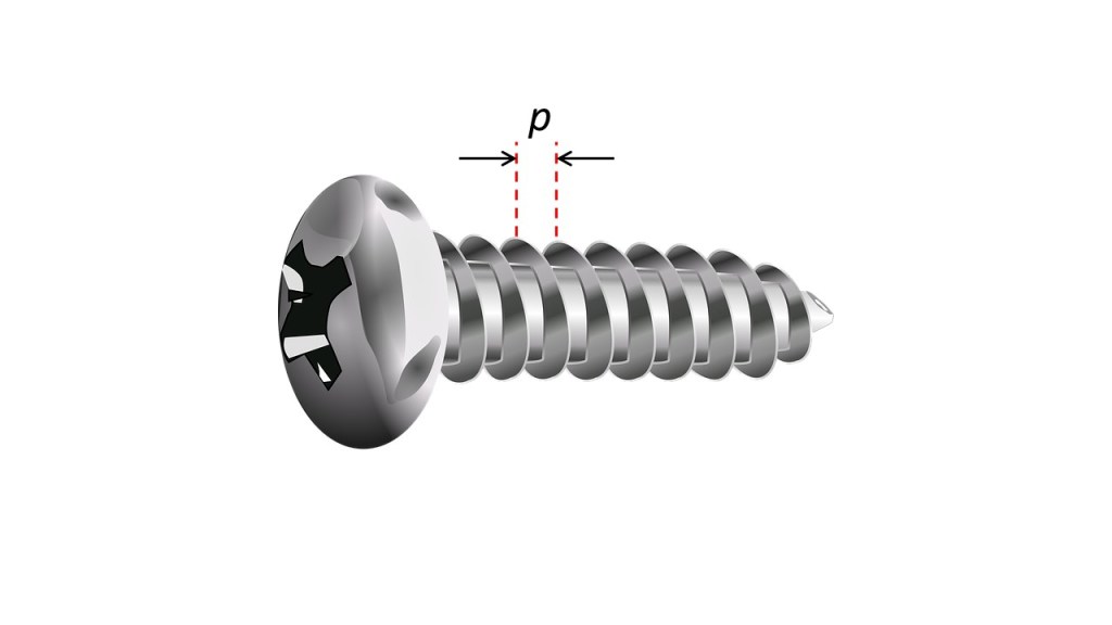 I’ve written equation 2 in this form so that p represents the increase in z every time θ increases by 2π radians, a complete turn of the helix; p is called the pitch of the helix. The picture below shows the pitch of a screw thread.