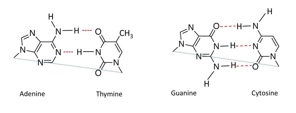 - The number of adenine (A) bases must be equal to the number of thymine (T) bases and the number of guanine (G) bases must be equal to the number of cytosine (C) bases (see post 21.2).