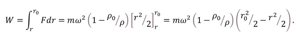 ΔE = m[1 – (ρ0/ρ)]ω2[(r02 – r2)/2] (3).