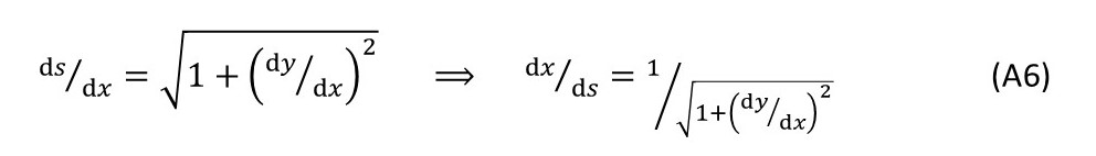We now need to find dx/ds to calculate ρ from equations A1, A4 and A5. If we approximate our elemental arc to a straight line, we can use Pythagoras’ theorem to write
