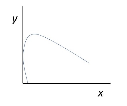 Now let’s think of the curve as being generated by plotting values of y against values of x, where y is a function of x, as in the picture above. We can now use our idea of radius of curvature, ρ, to define