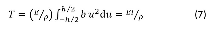 Here, I is the second moment of area of the cross-section. I have assumed that E and ρ are constant throughout the beam. More importantly, I have assumed that b remains constant throughout the cross-section, so that the cross-section is rectangular. However, if b were not constant (non-rectangular cross-section), I could simply replace the integral in equation 7 by more definite integrals (for a finite number of b values) or with a function that describes how b varies with u (for a continuous variation in b). The final conclusion (that T = EI/ρ) would remain unchanged. Books usually call T a bending moment because it’s a torque that tends to bend something.