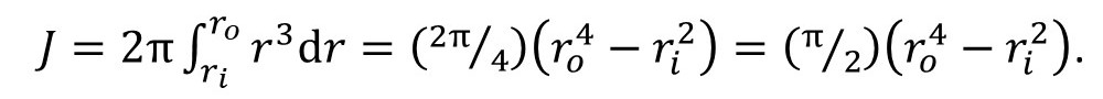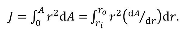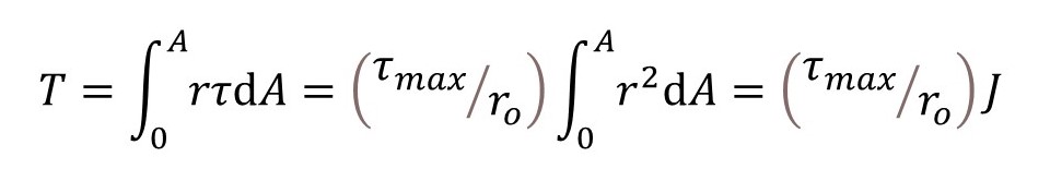 where A is its total area. The middle step comes from equation 5. J is called the polar second moment of area of the circular cross-section. Rearranging the final result gives us the equation