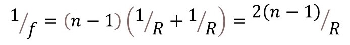 where f is called the focal length of the lens. Combining equations 1 and 2 gives