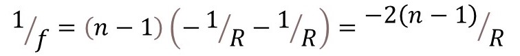 Now we define R1 = – R2 = R. The value of R2 is negative because its centre of curvature is in the negative x-axis direction. Then
