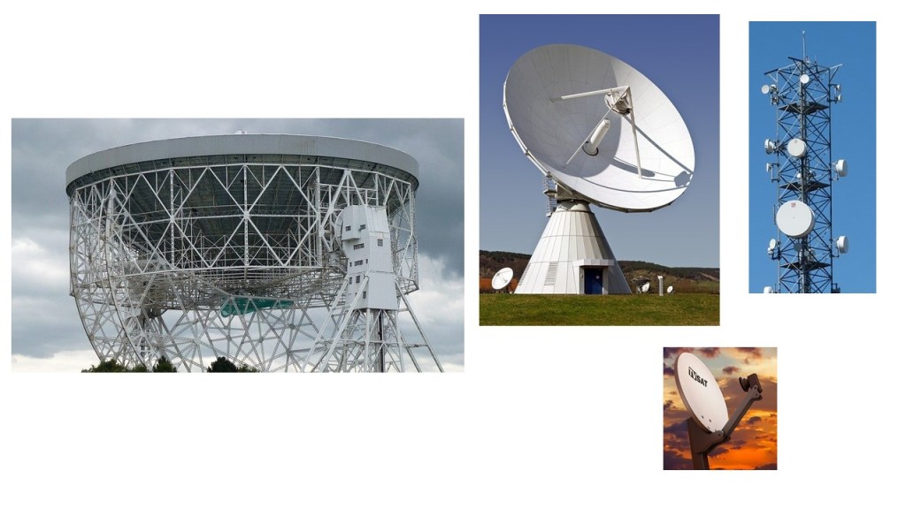 When I wrote about reflection in post 22.4, I concentrated on reflection of light by a mirror. Concave mirrors are useful but the more familiar applications of reflection at concave surfaces involve focussing radio waves and microwaves from distant objects. Examples include radio-telescopes, receivers for Radar, mobile phone masts and the satellite dishes used for television reception. In all these examples, the source is so far from the receiver that all rays from the source can be considered parallel (see post 22.1).