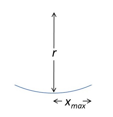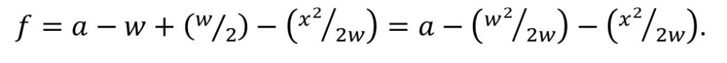 We can see that f depends upon the value of x, that is on the position of P. But let’s suppose that a is much greater than the maximum value, xmax, possible for x, as shown in the picture above. Then equation 3 approximates to