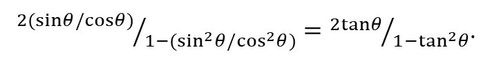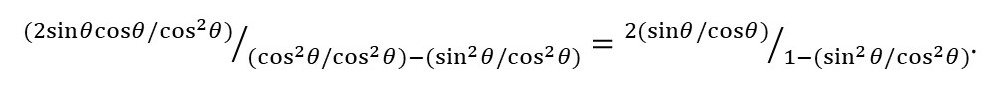 where the final step uses expressions for the cosine of the sum of angles and the sine of the sum of angles. Dividing the top and bottom of the right-hand side by cos2θ gives