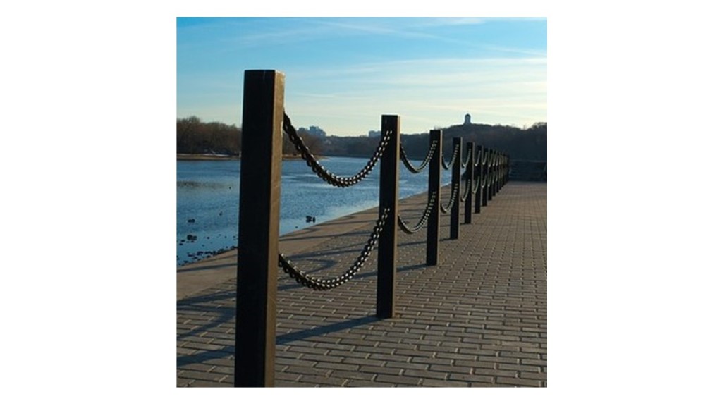 The picture above shows cables supported by pylons; each section of cable hangs from two fixed points. Between these points, the force of gravity stretches the cable so that it falls into a curve. Until the early seventeenth century, people believed this curve was a parabola. Why? Because it looked like one! But Galileo Galilei (1564-1642; known for the Galilean principle of relativity and describing the motion of planets relative to the sun, see post 16.9) doubted that this assumption was true. In 1691, the equation that really describes the curve was derived by Christiaan Huygens (1629-1695), Gottfried Leibnitz (1646-1716) and Johann Bernoulli (1667-1748). Huygens was a Dutch mathematician, responsible for Huygens’ principle. Leibnitz was a German philosopher and mathematician who thought of differentiation and integration independently of Newton, and at about the same time. Bernoulli was a Swiss mathematician, the father of Daniel Bernoulli who derived Bernoulli’s equation. We call the curve whose equation they derived the catenary. The word “catenary” comes from the Latin word catena meaning a chain because the smooth curve through the centroid of each link of a chain, supported at two ends, lies on a catenary – see the picture below.