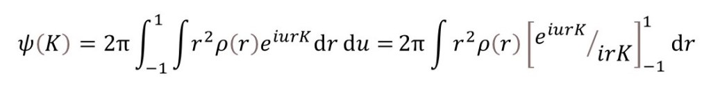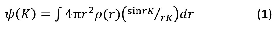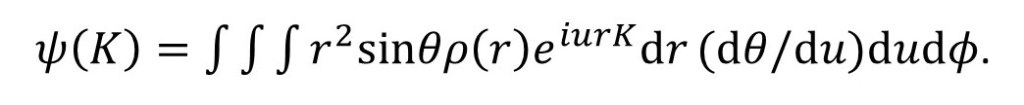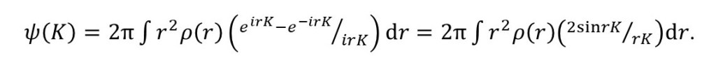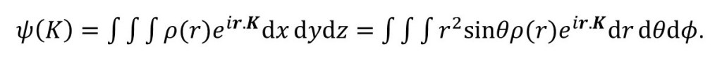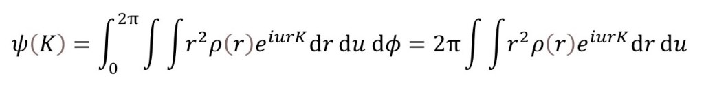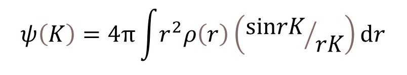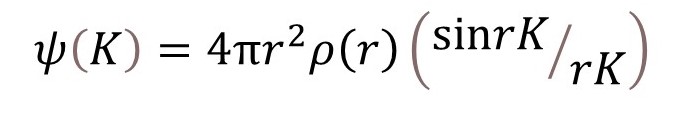 where i is the square root of minus 1, the scattering vector K represents the direction of the scattered x-rays and ρ(r) is the electron density as a function of r, a position vector in the object, as described in post 22.14. When this result is spherically averaged it is independent of the directions of r and K and is given by