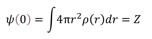 since the electron is at the Bohr radius. Remember that 4πr2 is the surface area of a sphere, so that ρ(r) is the atomic number, Z, that is 1 for hydrogen. If r = 0.05 nm, then