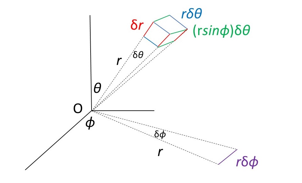 δV = (δr).(δθ) (rδφ)sinθ = r2sinθ.δr.δθ.δφ