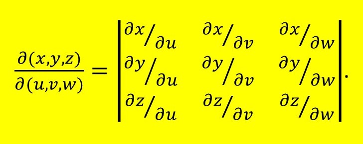 But how do we do this – we are trying to evaluate the integral with a different set of variables to those that define the value of the function. We need to change the mapping of the integral – that is we need to change the variables involved in integration from x, y and z to u, v and w.