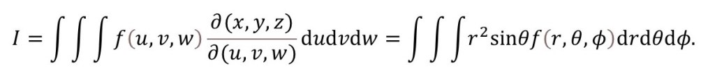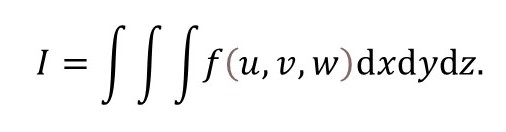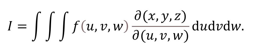 Now suppose that we transform the function so that it depends on three other variables u, v, w. If we want to evaluate I from this form of the function, we need to calculate