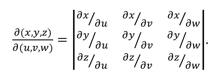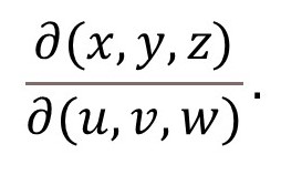 The Jacobian that enables us to change the mapping of I from x, y and z to u, v and w is represented by
