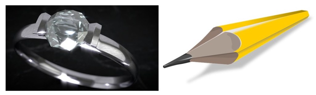 You might be surprised to learn that graphite is the thermodynamically stable form of carbon. But diamond is kinetically stable. If you own a diamond ring – don’t be alarmed. The activation energy required to break all the C-C bonds in a diamond is so high that your diamond will never spontaneously convert into the thermodynamically more stable graphite.