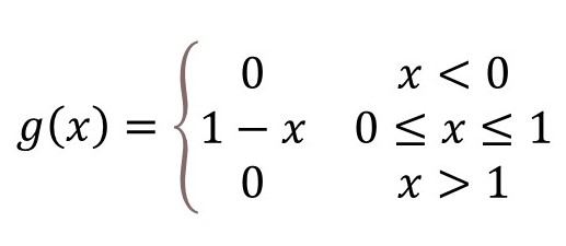 If you want to see how this result was calculated, see appendix 1. The picture below compares g(x) before and after convolution with f(x).