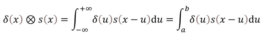 because the Dirac delta function would be zero outside these limits. When u = 0, s(x – u) = s(x) and its value is independent of u. So our convolution integral becomes