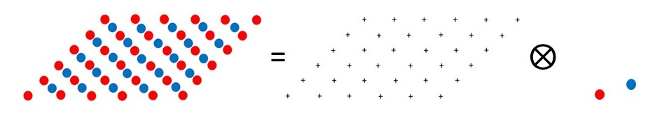 If you have read post 22.20, you will realise that the structure of an ideal crystal is the convolution of the unit cell contents with the lattice, as shown in the picture above.