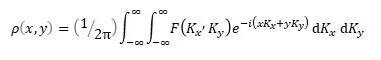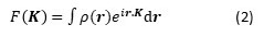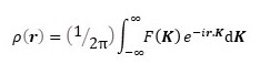 In posts 22.12 and 22.14, we saw that the rays scattered by an object (its diffraction pattern) could be represented, in amplitude and phase by the Fourier transform, F, of the density of scattering matter, ρ, in the object. F is a function of K and is defined by