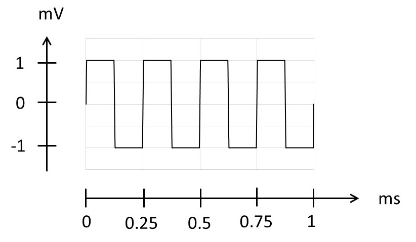 Let’s think about a wave, that we can represent by a wave function ψ(t) where t represents time, that has a time-period is T. An example is the time-dependent electrical potential, shown above (see also post 18.14) that has T = 0.25 ms.