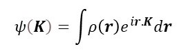 where the limits of integration are over the volume of the object (see post 17.19), e has an approximate value of 2.7183, i is the square root of -1 and K is the scattering vector that describes the direction of waves that make up the diffraction pattern (see post 22.23).
