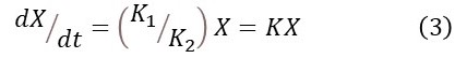 where K’’’ = –K2/K3 is a constant. This result has the same form as equation 3 and so represents exponential growth or decay.