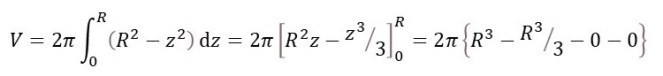 Our hemisphere is defined by 0 ≤ z ≤ R, so the volume of the whole sphere is given by the definite integral