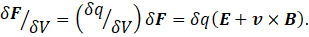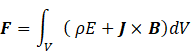 where integration is over the total volume containing the charge. I have dropped the subscript total, because it should now be clear that I am referring to the total force in an electric and magnetic field.