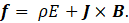 where f is the force per unit volume of charge and ρ is the charge density (measured in coulombs per square metre, C.m-3). Defining the current density, J, as ρv, gives