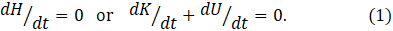 where K is the kinetic energy and U is the potential energy. If the system doesn’t lose or gain energy, the total energy remains constant so that