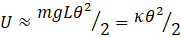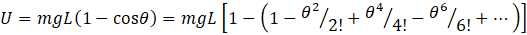 The picture above (from post 18.6) shows a pendulum, whose centre of gravity is at G, suspended from a point P; the distance from P to G is L. The height of, G’ (the position of G when the pendulum is displaced by an angle θ) above G, is given by Lcosθ. Then the potential energy of the pendulum is
